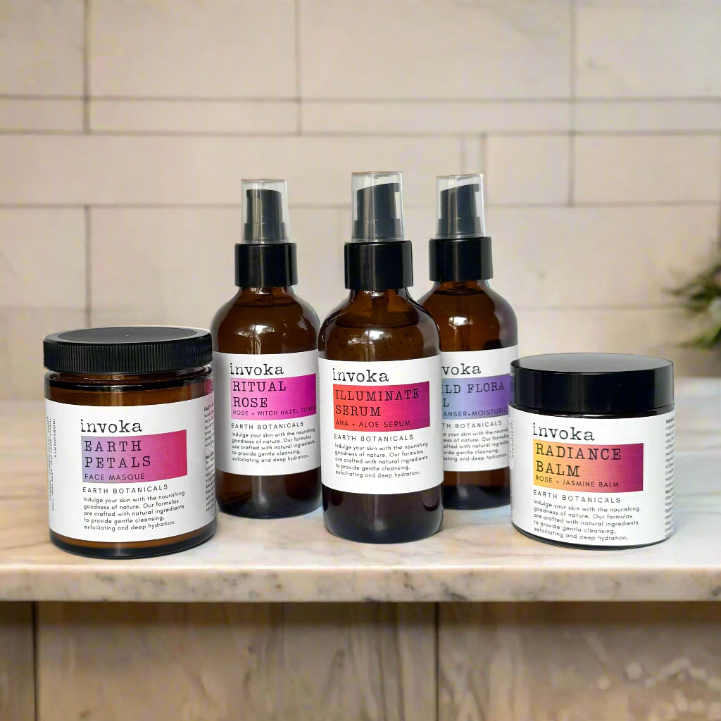 Awaken your skin and spirit with the Invoka Facial Ritual Set, an intuitively crafted collection of plant-based skincare essentials designed to nourish, restore, and illuminate. Each product works synergistically to support your skin’s natural radiance while inviting you to slow down and reconnect with your inner rhythm.